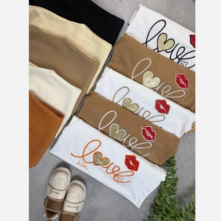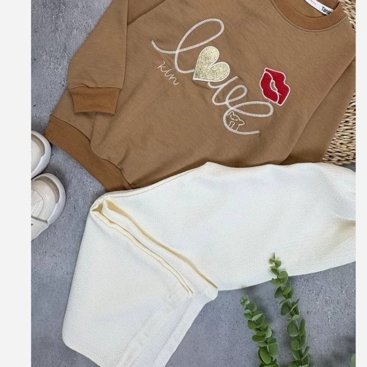 ست دخترانه طرح لاو سایز بزررررررگ دورس با شلوار لنین لمه دار