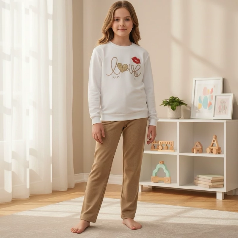 ست دخترانه طرح لاو سایز بزررررررگ دورس با شلوار لنین لمه دار